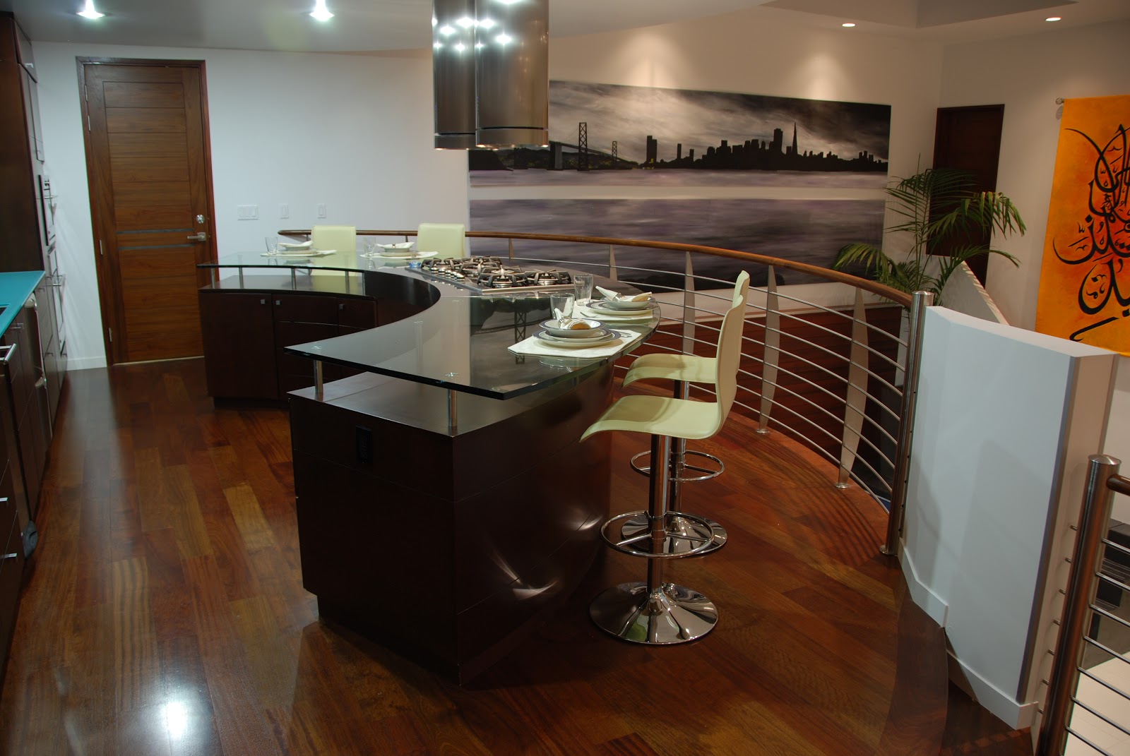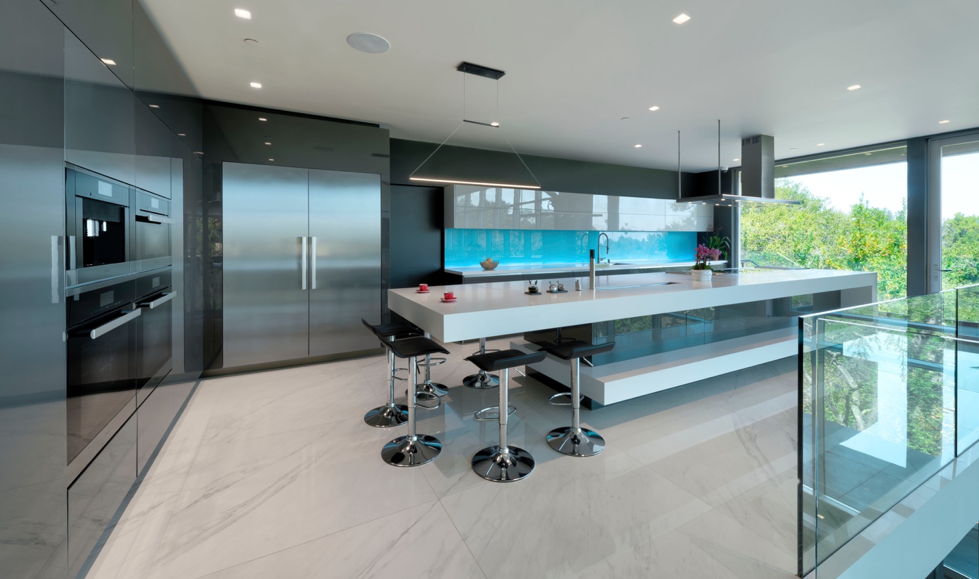 To achieve uniqueness, a modern kitchen should always have something special in its design, something that captures the viewers’ attention. For instance, in one of my projects I used a tropical aquarium as the kitchen’s entire backsplash. Filled with colorful fish, this aquarium worked as living art.